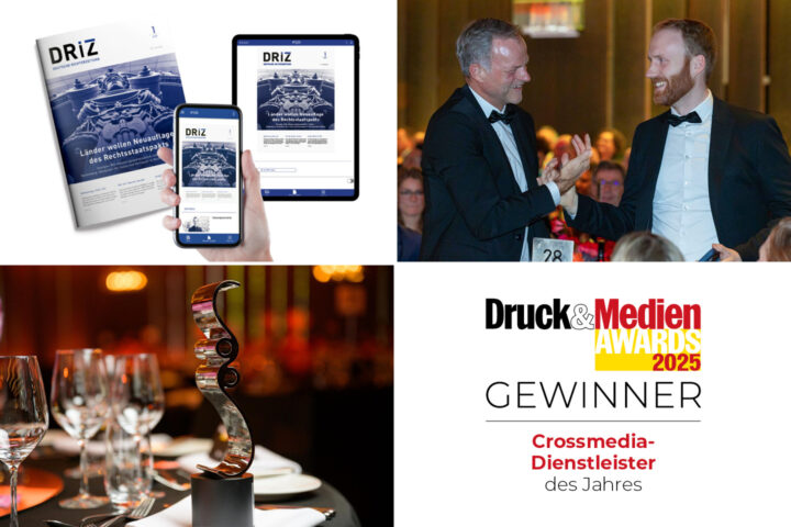 Der Award würdigt unser crossmediales Konzept für die Deutsche Richterzeitung (DRiZ) – das Fachmagazin des Deutschen Richterbundes (DRB), das seit 1909 Richterinnen, Richter und Staatsanwälte in ganz Deutschland begleitet.